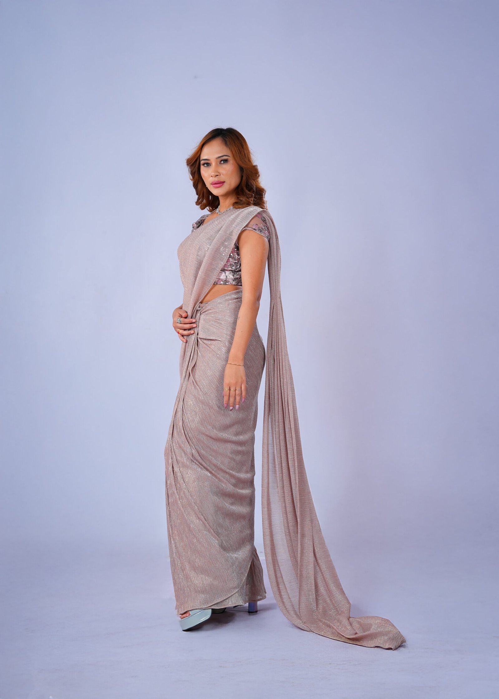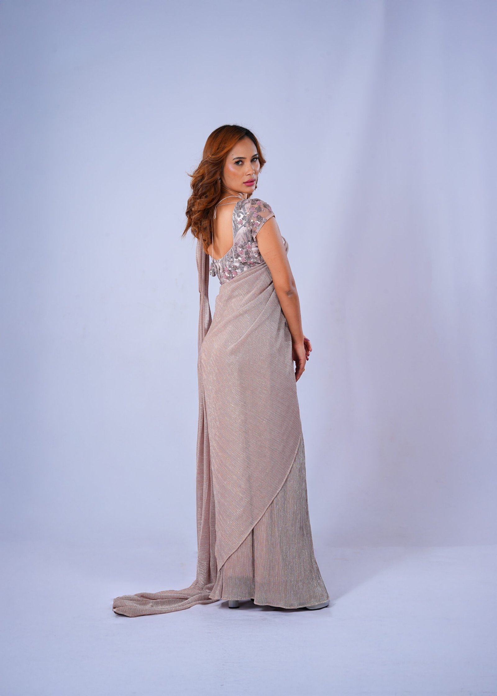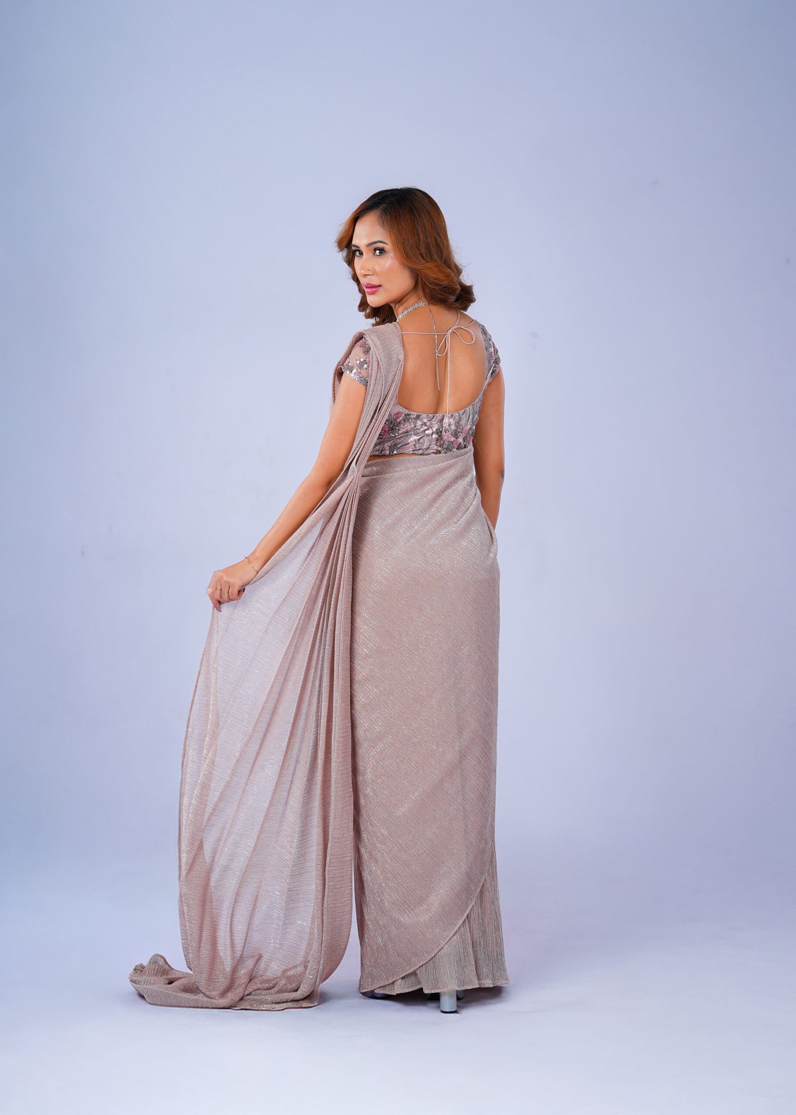 Draped pre stitched lycra net embellished with matching embroidered blouse
